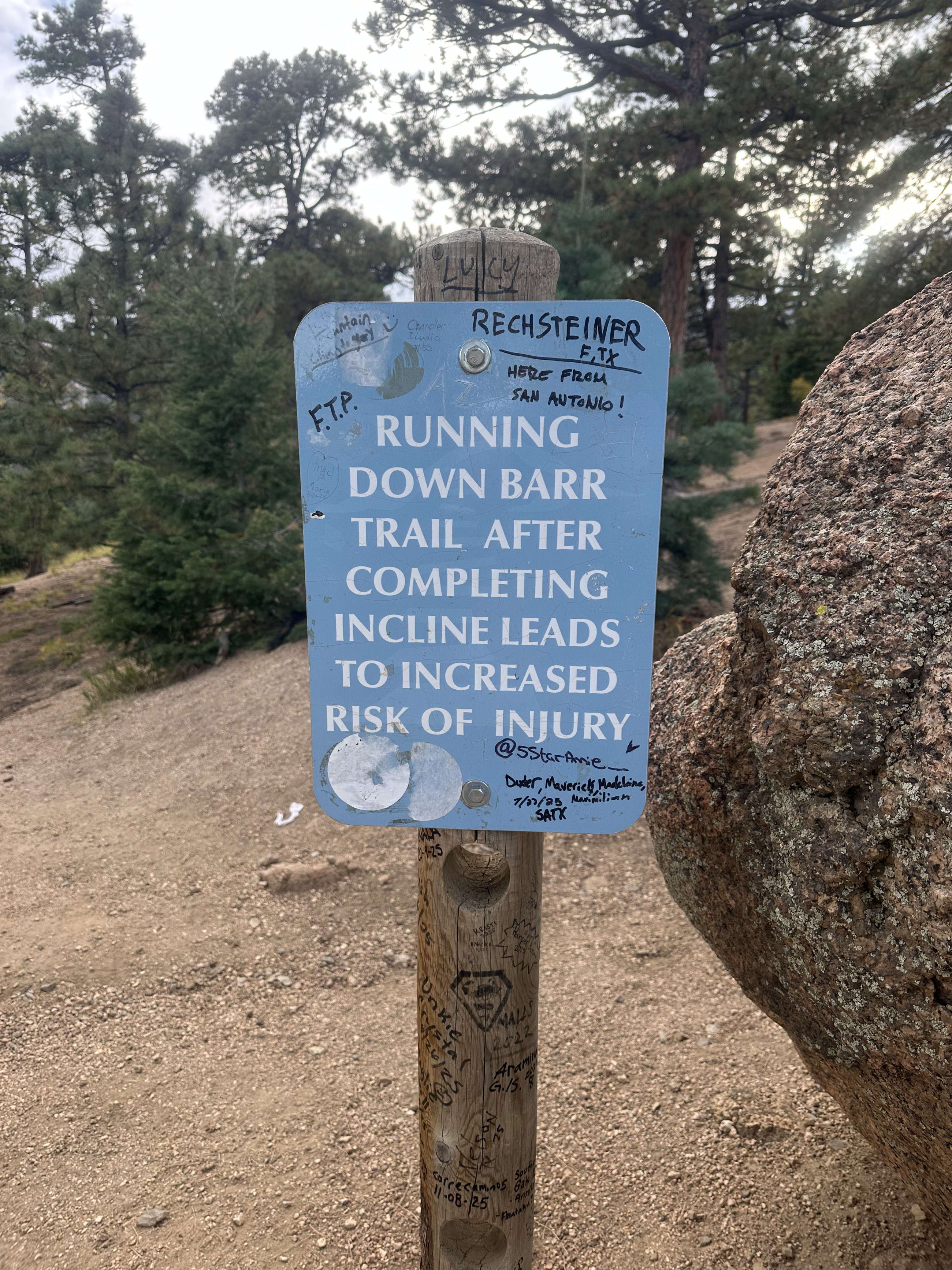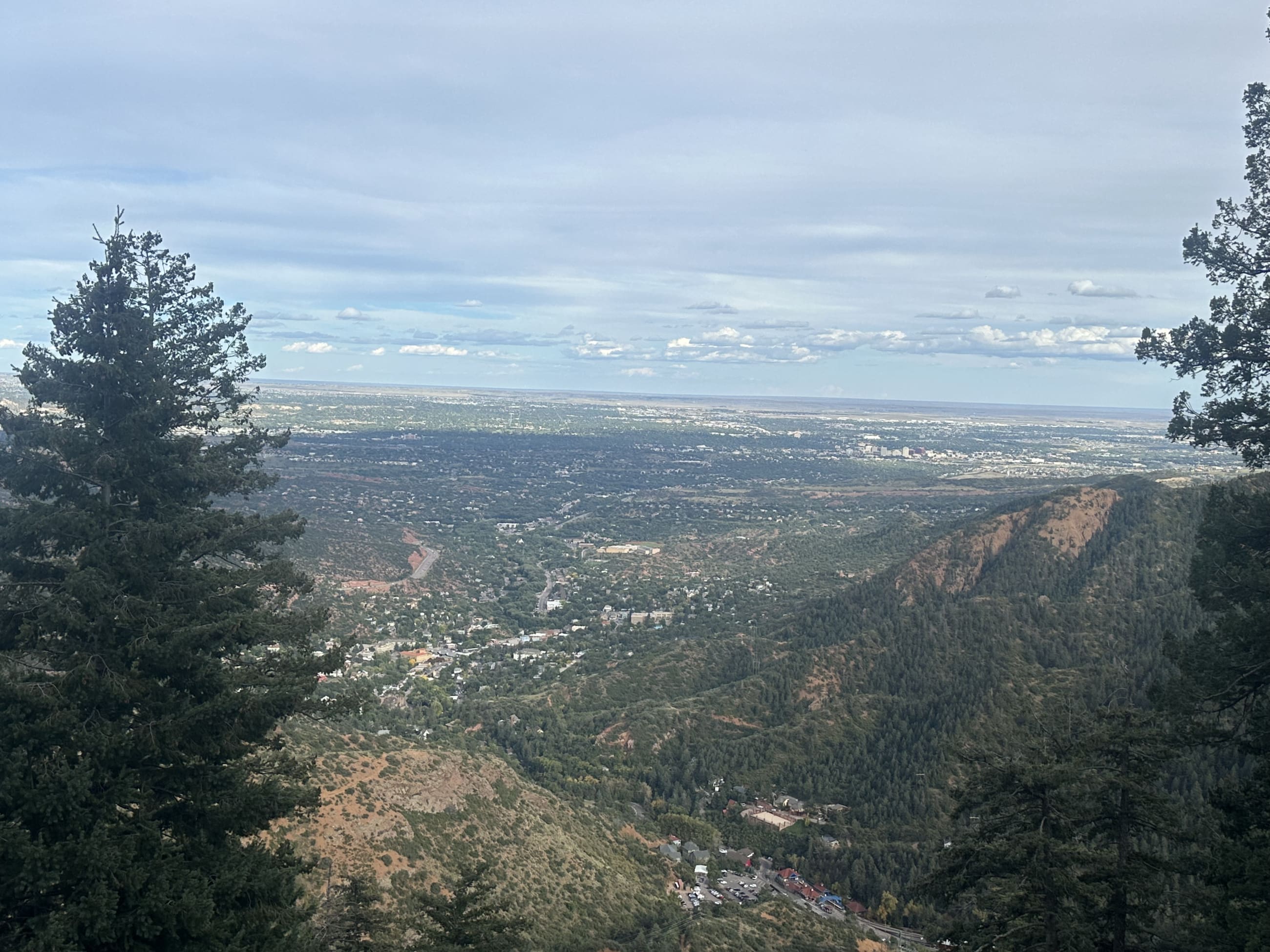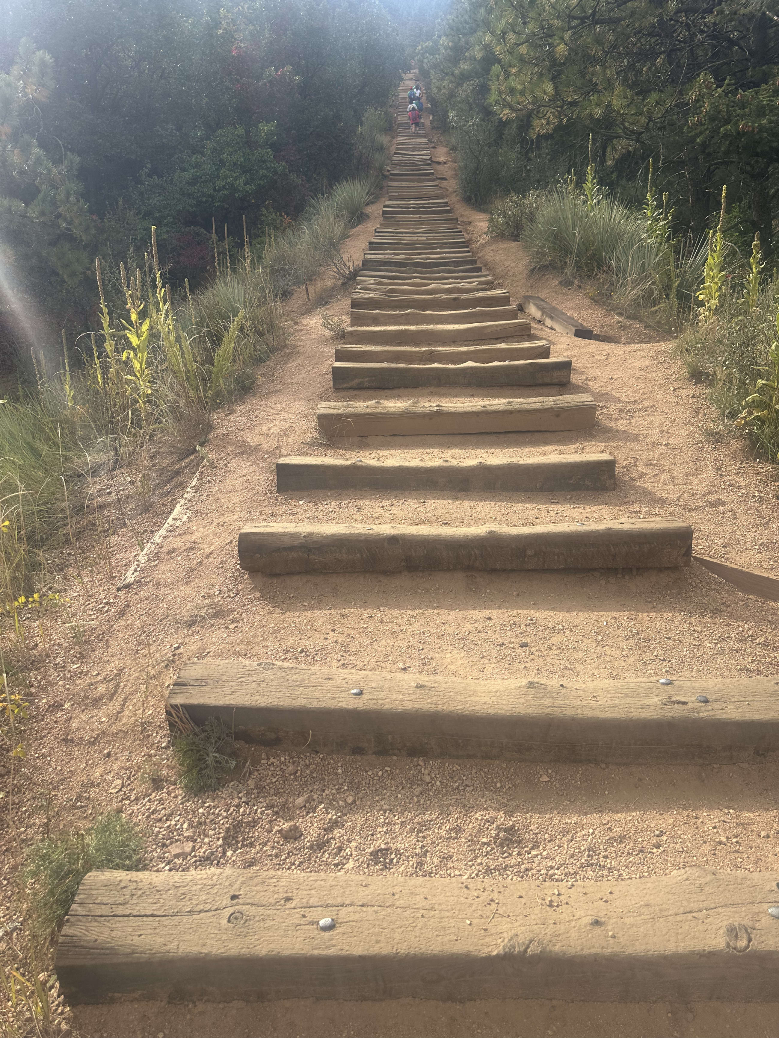 While some people run back down the steps (which is incredibly hard on the knees and technically prohibited by some local guidelines for safety), we took the Barr Trail back down. It's about a 4-mile trek down, but it's a beautiful, winding path that is much gentler on the legs. Along the way, you might even see the Pikes Peak Cog Railway passing by.